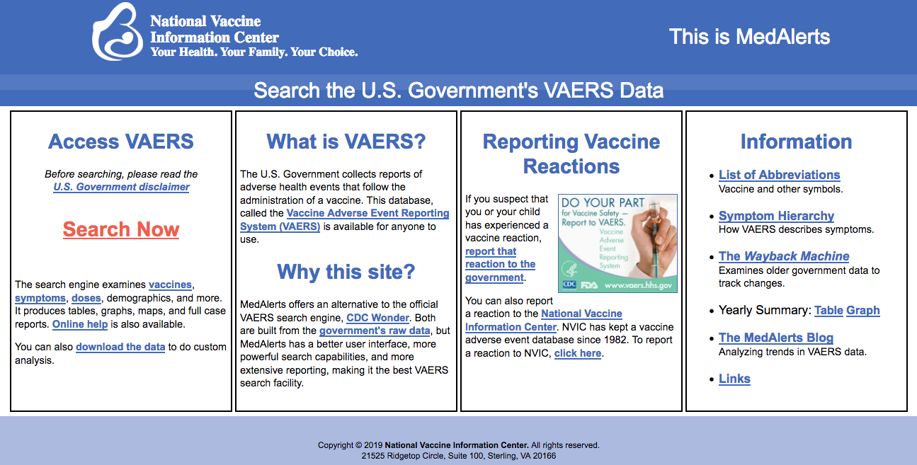 “VAERS” is short for “Vaccine Adverse Event Reporting System” and is a passive database where consumers can report reactions to these pharmaceutical products. VAERS stands separately from the system that FDA uses to routinely collect – and act upon – drug adverse reports and is supposed to “co-administered” by FDA. For more information or to submit a report, you may visit: https://vaers.hhs.gov/ or https://medalerts.org .