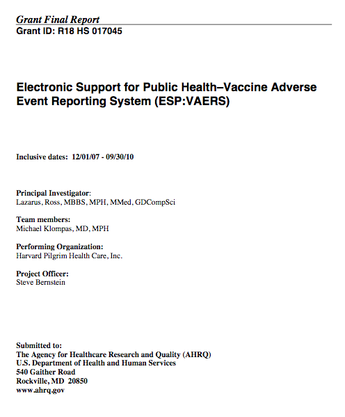 <Harvard Pilgrim Healthcare Report on Vaccine Adverse Reactions (click here to read)